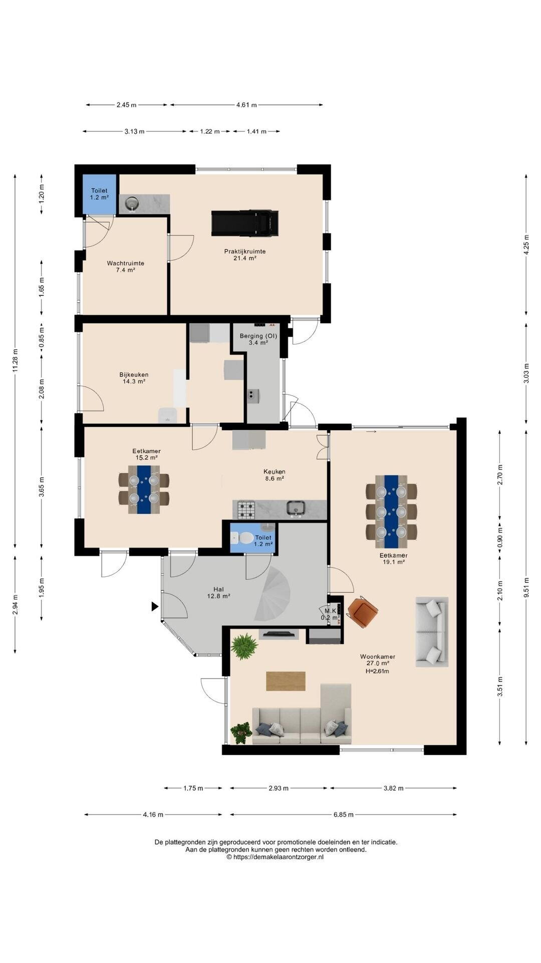 Grote praktijkruimte (ook geschikt als extra woonruimte);