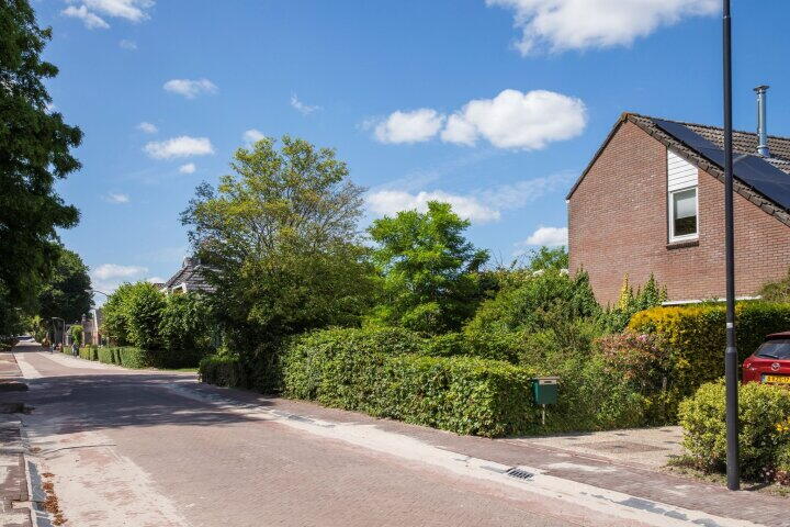Groot perceel op de hoek van Hageneind – Dorpsstraat. De woning beschikt over een ruime oprit, een tuin rondom en een besloten achtertuin zonder inkijk. Via een schuttingdeur is de achtertuin ook buitenom bereikbaar. De begroeiing zorgt voor veel privacy. Hoewel de woning deels geschakeld is met de garage van het buurhuis heeft het door de situering een vrijstaand karakter.
